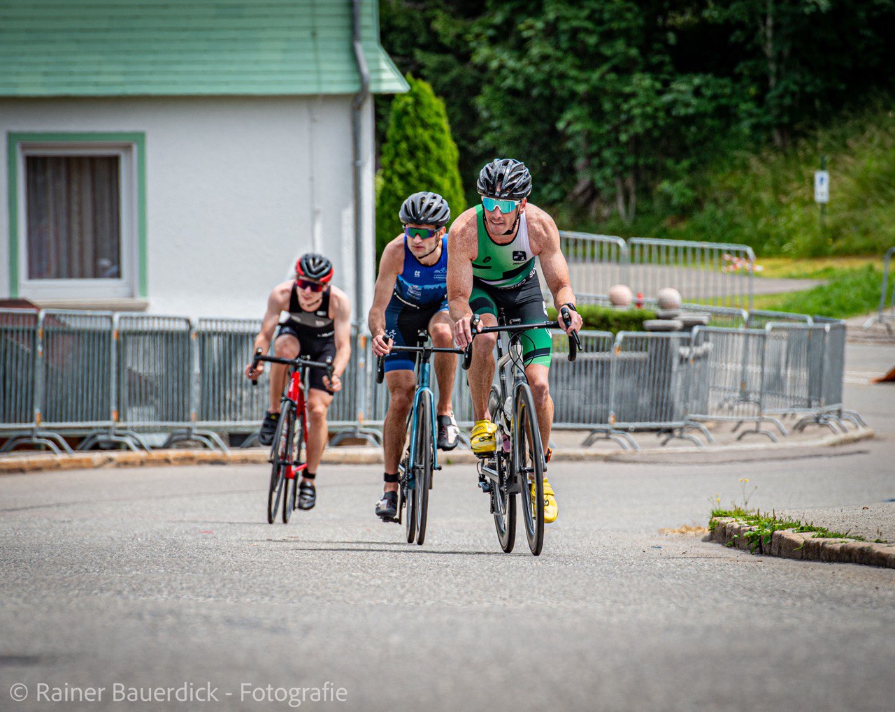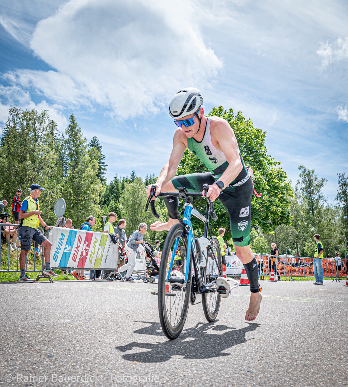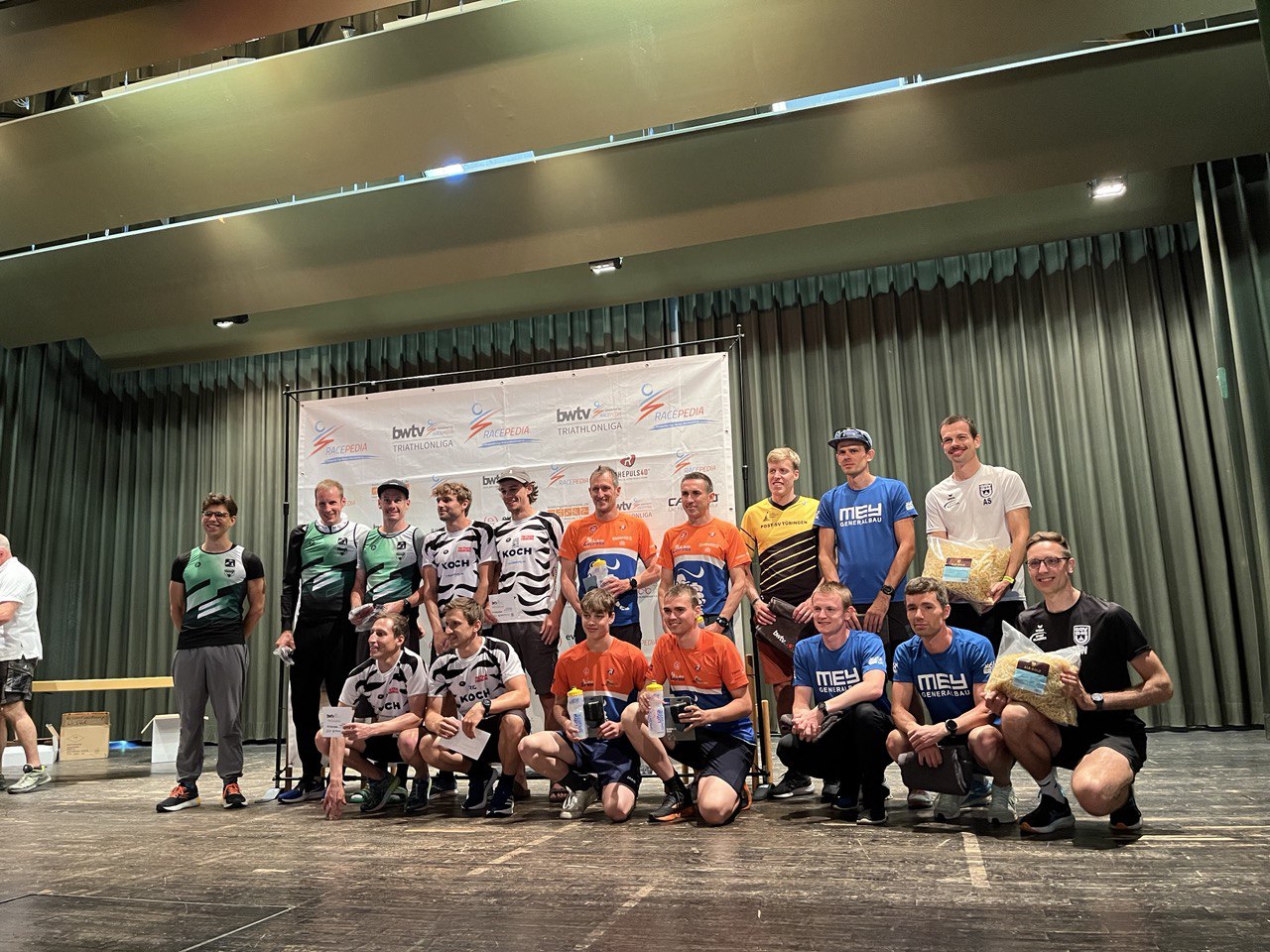 Der Triathlon am Schluchsee über die Olympische Distanz (1,5 km Schwimmen, 40 km Radfahren und 10 km Laufen), der am vergangenen Samstag stattfand, war der Abschlusswettkampf und damit das große Finale der Triathlon-Landesliga Süd. Auch standen mit unserer Top-Mannschaft am Start, galt es doch, den bisherigen guten Tabellenplatz zu verteidigen, um den Aufstieg in die erste Landesliga zu sichern. Entsprechend groß war der Ehrgeiz von Chris, Thorsten und den zwei Maxis wieder vorne mit dabei zu sein, hatten sie doch beim letzten Wettkampf in Schopfheim gezeigt, dass sie zu den starken Teams gehören. Maxi senior, der sich bereits beim Schwimmen im Schluchsee an die Spitze setzen konnte, ließ sich die Führung nicht mehr nehmen und beendete den Triathlon in 1:53:19 h als Erster – sein zweiter Einzelsieg in der Liga. Chris, Maxi und Throsten, die nahezu zeitgleich mit knapp zwei Minuten Rückstand auf Rösch aus dem Wasser kamen, arbeiteten sich auf dem Rad zunächst gemeinsam vor. Chris spielte dann mit dem schnellsten Radsplit des Tages seine Stärke aus und setzte sich noch einmal von der Verfolgergruppe ab und lief als sechster in 1:56:33 h ins Ziel. Maxi auf Platz 12 und Thorsten auf Platz 22 komplettierten das herausragende Gesamtergebnis, das wie von einer Woche in Schopfheim klar für den Teamsieg reichte. Mit dieser erstklassigen Leistung war es am Ende nur ein Punkt, der uns vom Meistertitel trennte. „Ein fehlender Punkt zum Meistertitel ist zwar ärgerlich, trotzdem können wir mit dem gesamten Saisonverlauf ohne Verletzungen und Stürze sehr zufrieden sein. Das war eine tolle Mannschaftsleistung.“, so Maxi nach dem für die Triathleten wohl schönsten Ligawettkampf. Das Hauptziel, der Aufstieg in die erste Triathlon-Landesliga, ist damit erreicht. In der nächsten Saison dürfen sich unsere Jungs mit den besten Teams aus Baden-Württemberg messen.
