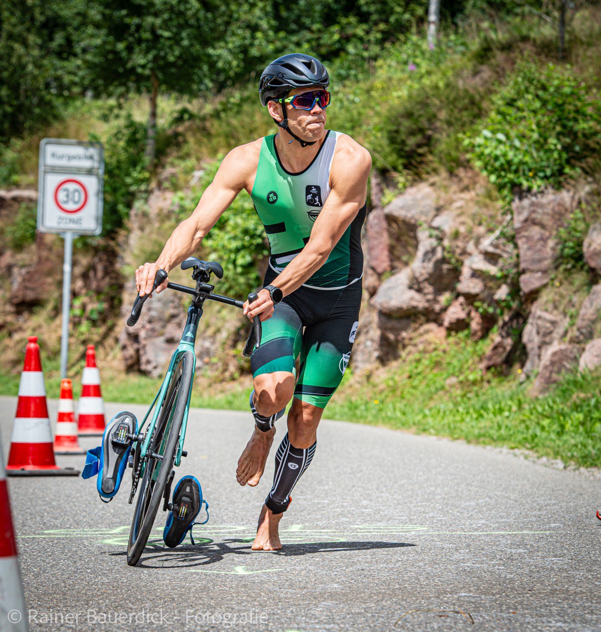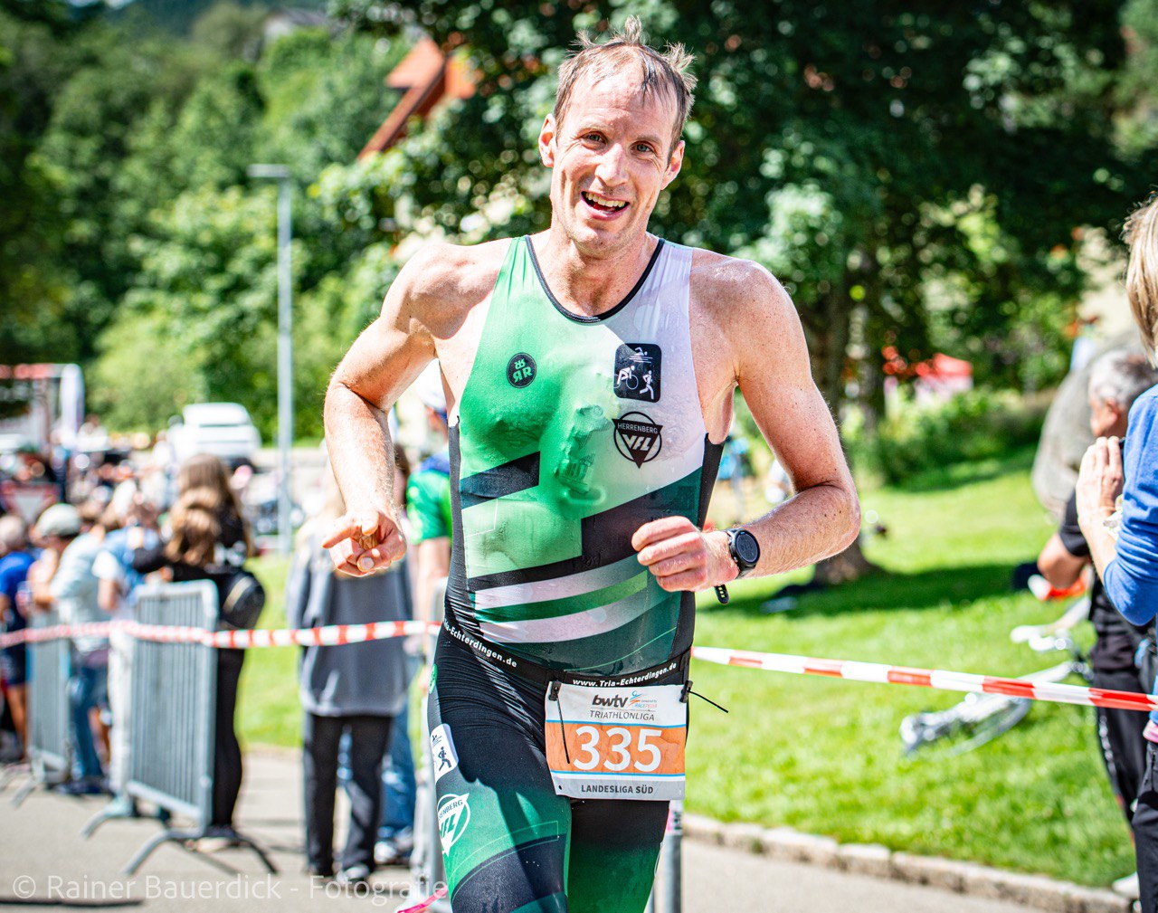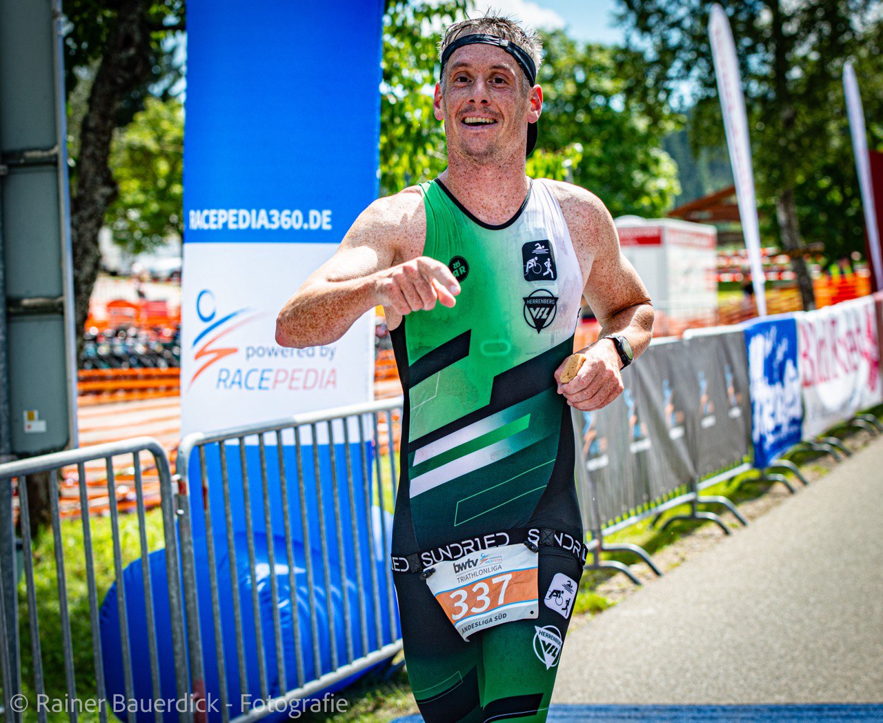 Der Triathlon am Schluchsee über die Olympische Distanz (1,5 km Schwimmen, 40 km Radfahren und 10 km Laufen), der am vergangenen Samstag stattfand, war der Abschlusswettkampf und damit das große Finale der Triathlon-Landesliga Süd. Auch standen mit unserer Top-Mannschaft am Start, galt es doch, den bisherigen guten Tabellenplatz zu verteidigen, um den Aufstieg in die erste Landesliga zu sichern. Entsprechend groß war der Ehrgeiz von Chris, Thorsten und den zwei Maxis wieder vorne mit dabei zu sein, hatten sie doch beim letzten Wettkampf in Schopfheim gezeigt, dass sie zu den starken Teams gehören. Maxi senior, der sich bereits beim Schwimmen im Schluchsee an die Spitze setzen konnte, ließ sich die Führung nicht mehr nehmen und beendete den Triathlon in 1:53:19 h als Erster – sein zweiter Einzelsieg in der Liga. Chris, Maxi und Throsten, die nahezu zeitgleich mit knapp zwei Minuten Rückstand auf Rösch aus dem Wasser kamen, arbeiteten sich auf dem Rad zunächst gemeinsam vor. Chris spielte dann mit dem schnellsten Radsplit des Tages seine Stärke aus und setzte sich noch einmal von der Verfolgergruppe ab und lief als sechster in 1:56:33 h ins Ziel. Maxi auf Platz 12 und Thorsten auf Platz 22 komplettierten das herausragende Gesamtergebnis, das wie von einer Woche in Schopfheim klar für den Teamsieg reichte. Mit dieser erstklassigen Leistung war es am Ende nur ein Punkt, der uns vom Meistertitel trennte. „Ein fehlender Punkt zum Meistertitel ist zwar ärgerlich, trotzdem können wir mit dem gesamten Saisonverlauf ohne Verletzungen und Stürze sehr zufrieden sein. Das war eine tolle Mannschaftsleistung.“, so Maxi nach dem für die Triathleten wohl schönsten Ligawettkampf. Das Hauptziel, der Aufstieg in die erste Triathlon-Landesliga, ist damit erreicht. In der nächsten Saison dürfen sich unsere Jungs mit den besten Teams aus Baden-Württemberg messen.