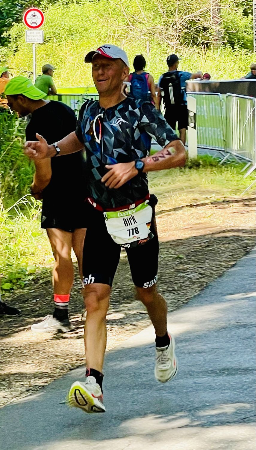 Uns allen machten natürlich die hohen Temperaturen bereits am frühen Morgen zu schaffen. Der Startschuss fiel um 7:05 Uhr und schon beim Wechsel auf das Rad zeigte das Thermometer Temperaturen von über 20 Grad an. Diese stiegen auf über 30 Grad während des Marathons an. Ein Großteil der Laufstrecke führte entlang des Main-Donau-Kanals, der wenig Schatten bot.