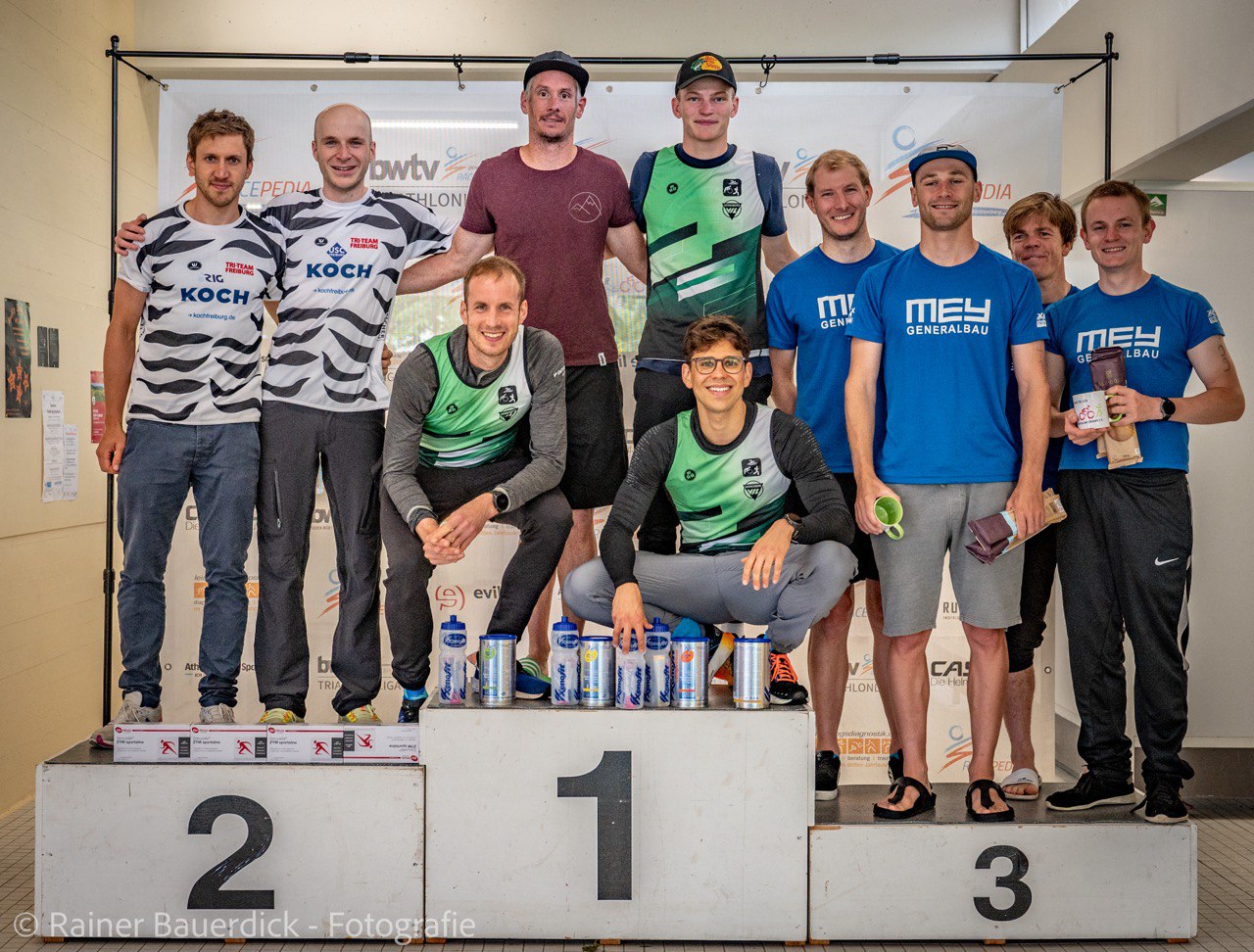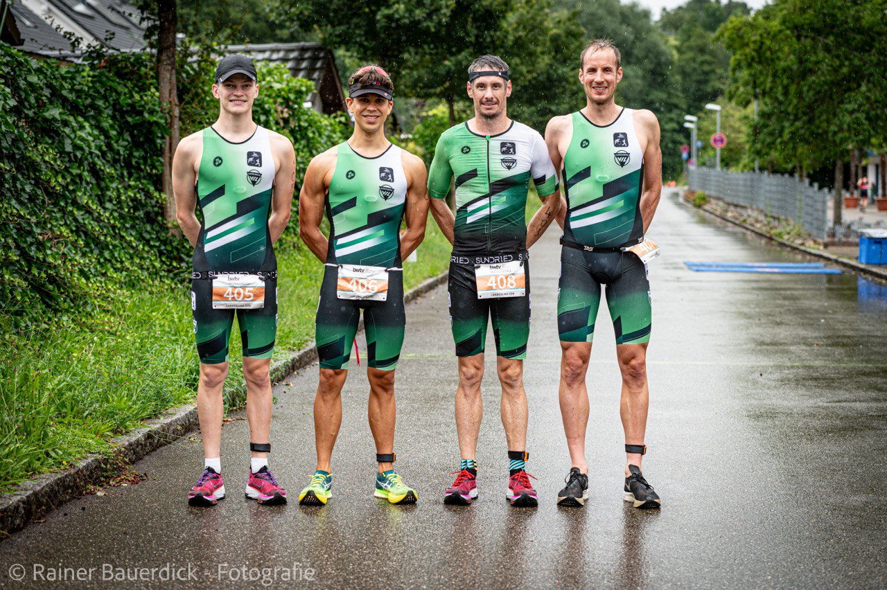 Am vergangenen Samstag fand der vierte von fünf Wettkämpfen der Triathlon-Landesliga Süd in Schopfheim statt. In einem besonderen Format: Zuerst wurde gelaufen, dann auf anspruchsvoller Strecke geradelt und zum Schluss geschwommen, sozusagen ein umgekehrter Triathlon. Nach langer Anreise fanden sich die vier VfL-Athleten im strömenden Regen wieder, keine guten Bedingungen für Bestleistungen. Dennoch gelang es Maxi senior sich in der Führungsgruppe zu platzieren, Chris und Maxi führten die Verfolgergruppe an, gefolgt von Thorsten. Mit Erfolg: Maxi senior konnte sich den Einzelsieg sichern und durch die klasse Platzierungen aller vier Athleten machten sie auch den Teamsieg perfekt, den ersten in der VfL-Geschichte! Bei den schlechten Bedingungen ein versöhnlicher Abschluss. Kommenden Samstag findet nun das große Finale am Schluchsee statt und die Chancen stehen gut, dass das VfL-Ligateam dann auch seinen Aufstieg in die 1. Landesliga feiern kann.