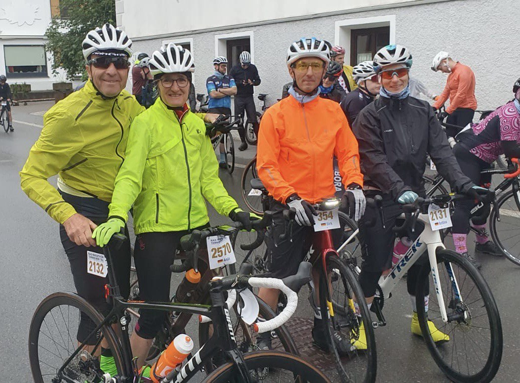 Beim Radmarathon im Tannheimer Tal: Dem Dauerregen und den frostigen Temperaturen um die 12 Grad zum Trotz wagten sich Bettina, Dirk, Helmut und Rainer am Sonntag an die 138 km bzw. 214 km langen Strecken. Rainer, der sich für die lange Tour entschieden hat, absolvierte diese in 9:30 h, Bettina und Dirk fuhren die 138 km in 4:58 h und Helmut in 5:13 h. Wir gratulieren euch zum Finish und freuen uns, dass ihr es trotz schlechten Bedingungen durchgezogen habt!